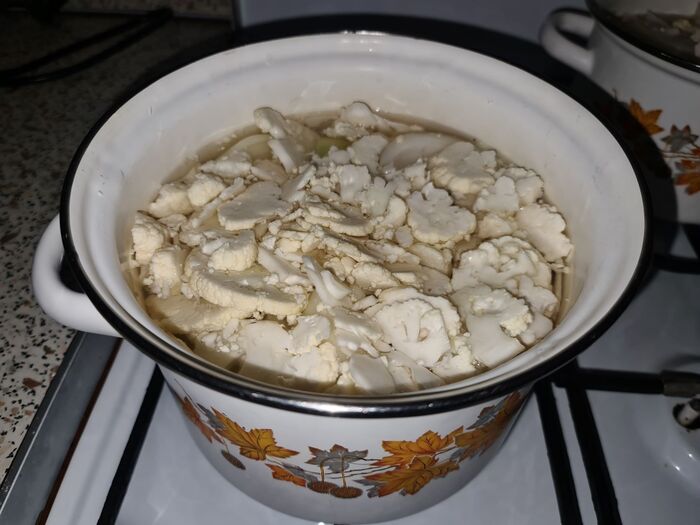 Вот такой у нас кипит супчик. На вид ужасно, запах ещё хуже, пахнет как в детстве в столовке, но ничего страшного, это просто запах варёных овощей. Дальше всё будет лучше.