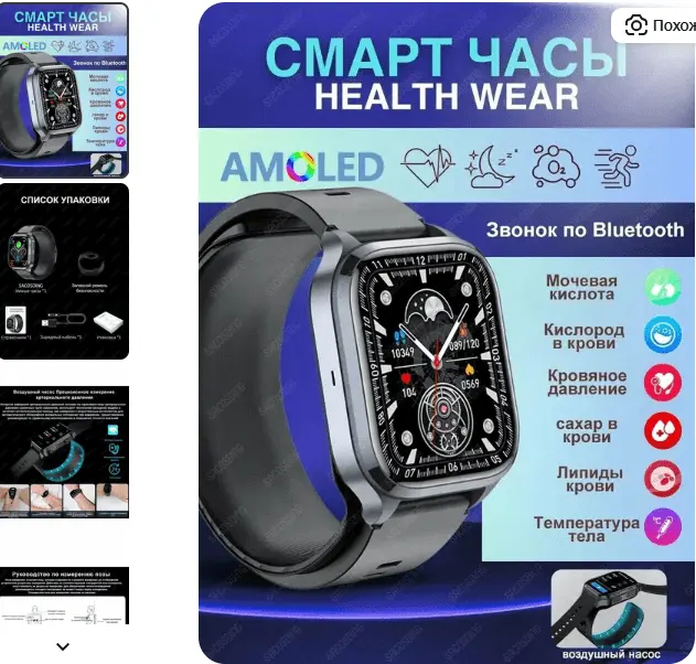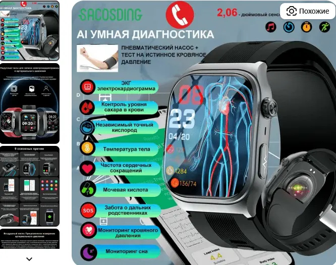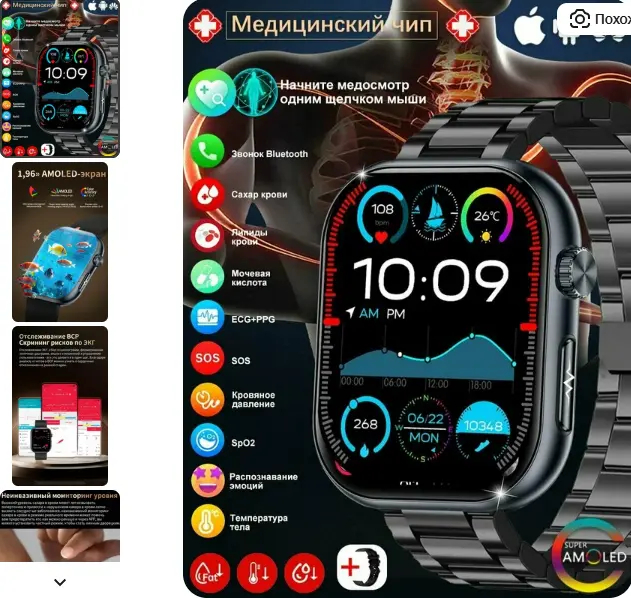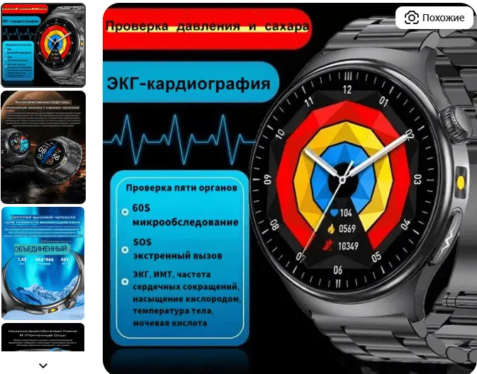 Ссылка на Яндекс Маркет: Smart Watch с ЭКГ, ИМТ и сахаром