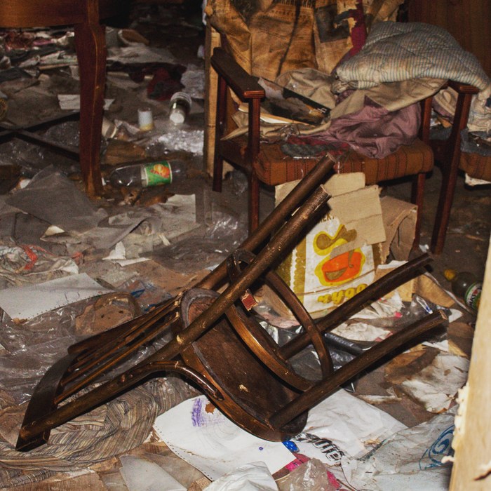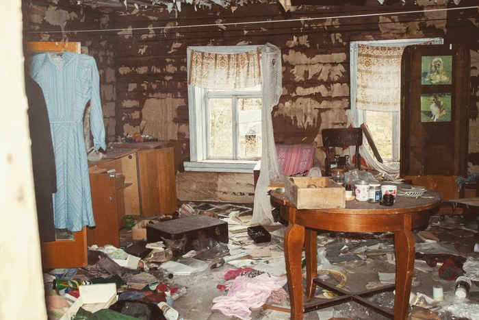 Бардак который там останется надолго, кто учинил его не ясно. Возможно собирались быстро, а может мородёры всё перевернули.