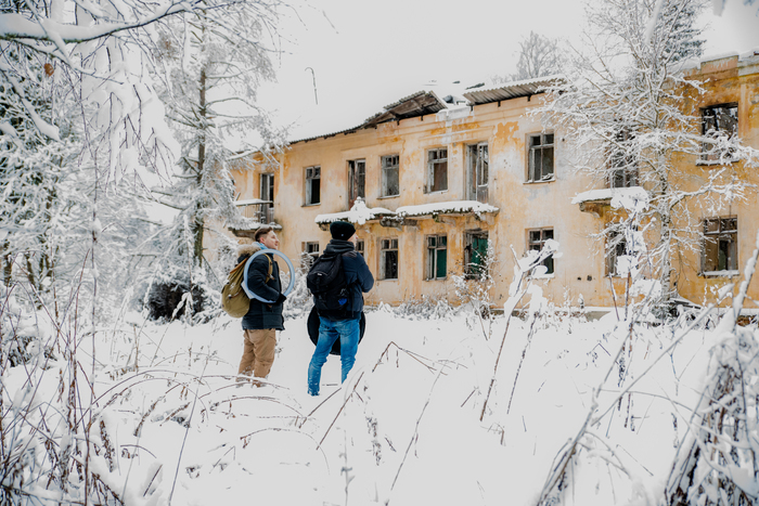 Территория огромная, на ней есть несколько административных зданий (были магазины, баня и несколько подземных бункеров, но мы их не нашли).