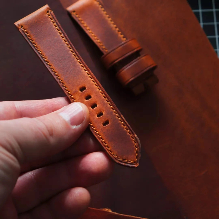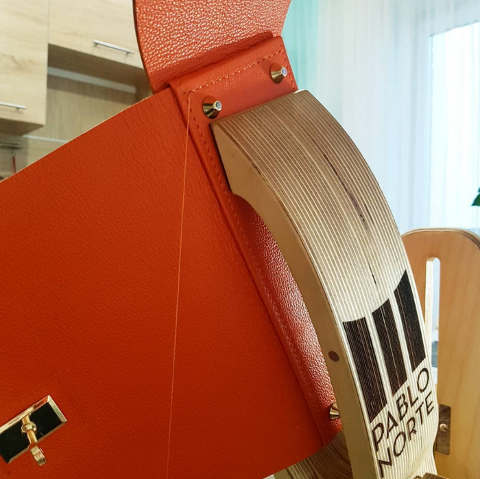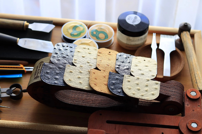 Кожа использована Итальянская растительного дубления , подклад Arlan, каждый стяжек выполнен вручную армированной нитью.