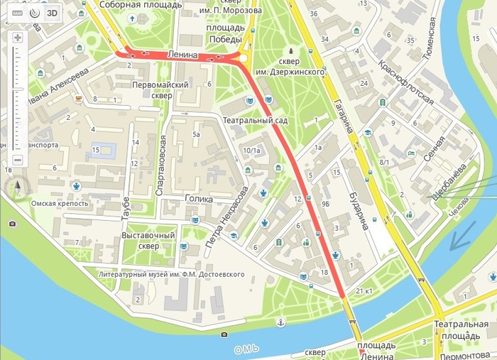 Далее видим исторический центр Омска - Любинский проспект имеет также наклон влево :