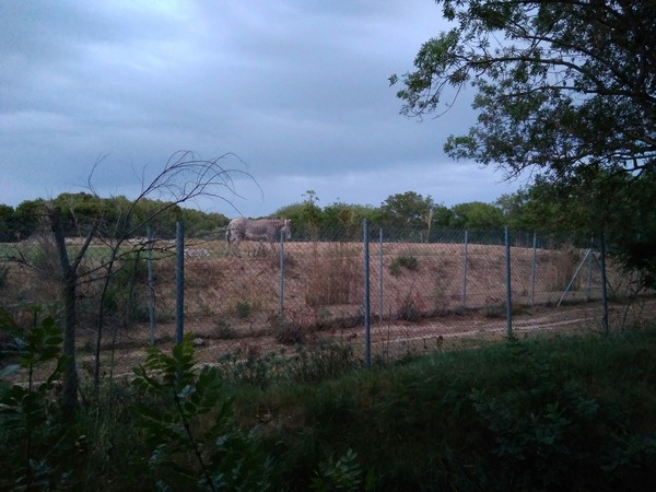 На обратном пути мы нашли замечательный кемпинг "Camping la Grange Neuve" во французском городке Сижан недалеко от древней Нарбонны. Заселились в шесть вечера за 18.50 евро (это, естественно, в палатке). Доплатив ещё 2 евро, можно было бы получить кусочек интернета, а также администратор спрашивал нужно ли нам электричество - думаю, тоже за отдельную плату. На территории был бассейн, детская площадка, столики со скамейками, душ и туалет. Где-то я читал заметки туристов и писали, что во Франции в кемпингах душевые и туалеты не разделяются на мужские и женские, но нам такие не попадались. В общем, всё для людей. Был даже магазинчик, но мы не заходили в него и не знаем каков ассортимент и ценовая политика. Самое удивительное в этом кемпинге было то, что за забором из сетки рабицы гуляли страусы и какие-то козлорогокопытные, в коих я не слишком силён, чтобы назвать их ареал обитания и принадлежность к какому-либо семейству. Дети были в восторге от такого зрелища. Но вечером мы ещё больше удивились, когда мимо нашей палатки за забором стали бегать и игриво брыкаться зебры (!). Всю ночь они резвились, топатали и хрюкали (именно хрюкали), но это не помешало нам выспаться. Оказывается наш кемпинг соседствовал с сафари-парком Сижан (для справки: заповедник Сижан - большой парк дикой африканской природы, расположенный на юге Франции, на побережье Средиземного моря. Занимает площадь 300 га, на которых обитает 2000 птиц, 900 млекопитающих и 900 рептилий. В общей сложности здесь можно увидеть свыше 160 видов животных).
