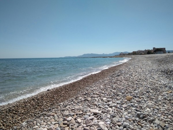 К обеду, где-то между Таррагоной и Валенсией мы съехали к морю, вдоль которого ехали весь сегодняшний день. Пляж был галечным и там никого не было. Искупавшись в средиземном море, мы собрались в путь. Самым тяжёлым было усадить детей в машину, так как им очень хотелось сидеть на берегу моря и кидать в него камушки. Нет ну это правда занимательно, но мы не могли посвятить этому весь отпуск.