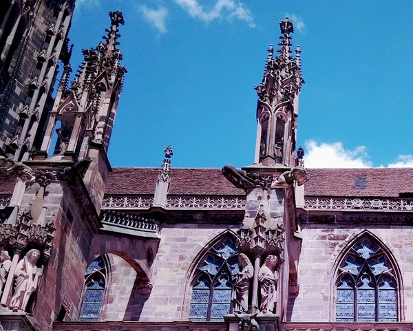 Freiburger Munster по праву считается одним из прекраснейших соборов не только в Германии, но и во всей планете. Он строился на протяжении трёх столетий, с начала двенадцатого и до конца пятнадцатого, на месте, где ранее так же размещался собор. Он славится обилием причудливых украшений сточных желобов, имеющихся только у немногих готических соборов. Среди прочего, имеется человеческая фигура, в которой вода вытекает наружу из голого зада — предполагается, что задница была направлена каменотёсами в сторону резиденции епископа, задолжавшего им денег. Другая городская легенда гласит, что на строительство Фрайбургского собора жертвовали деньги все жители прилегающих к месту строительства домов; лишь один домовладелец отказался внести пожертвование. Именно к его дому и направлена одна-единственная фигура, расположенная задней частью туловища.