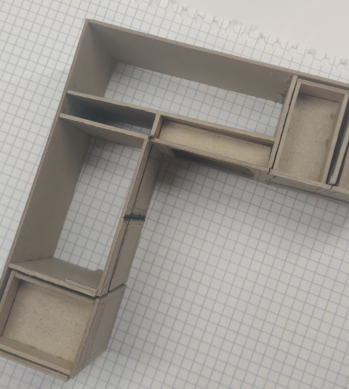 Для начала прикидываю масштаб и делаю предварительный чертеж. А предварительный он потому что в реальности придётся всё менять, т.к. по какой-то причине у меня случился глазомер косой чайки и внутри гарнитура нет ни одной прямой линии.