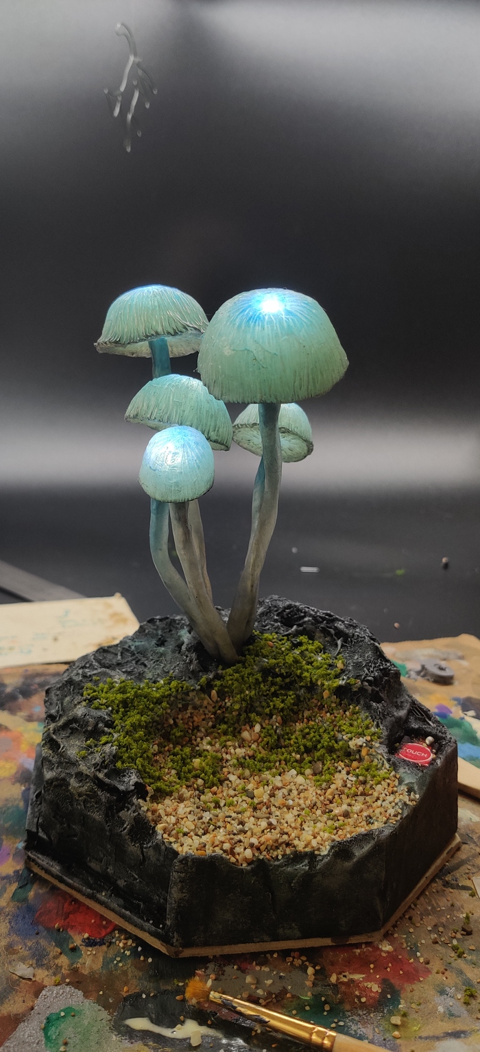 Дальше самый сок: пока рамки сушатся и твердеют, нужно сделать сами колдунские грибы. Иии даа, здесь можно дать волю фантазии! Я сделала три "вензеля" с отсылкой к любимым закрученным булочкам, очень харизматичные мухоморы, особенно в зелёной рамке, и миленькие, но мистические "блуждающие огни".