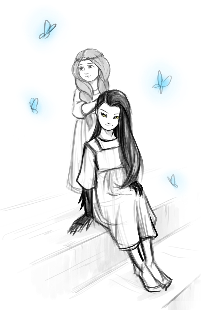 Этот отрывок - про детство Пельки, Соловьиной дочки. Она осиротела в 4 года (папка мамку убил), всё детство жила в Белом Городе (ах да, это АУшка по Последнему богатырю) с опекунами - воеводой Бориславом и Ягой (не пара, просто опекают одного ребенка). Предвзятое отношение народа к Яге транслируется и на ее приемную внучку, поэтому друзей-подруг у девочки нет, зато есть ценные знания и умения, которые ей в жизни ой как пригодятся!