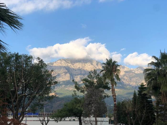 Так как предстояло ехать 3 дня, то мы выехали в пятницу. Вот такой вид в Кемере на горы утром: