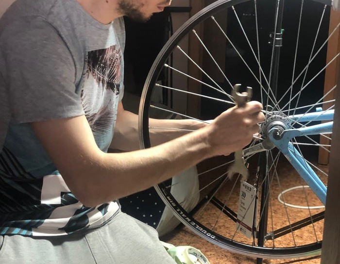 Вечерами я доделывал нужные моменты перед первой серьезной поездкой. Колёса были собраны недавно, я протягивал спицы, убирал микровосьмерки. Регулировал тормоза. Хочется отметить что хозяева апартаментов как правила адекватно и даже позитивно относятся к велосипедам, показывают где их лучше парковать. Нам повезло и велики парковались прямо у двери наших апартаментов, на виду. Удобно снаряжать и ковыряться. Никаких проблем затащить в дом.