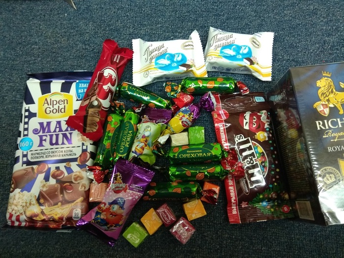 И еще нереальное количество сладостей и чай! Видите квадратные конфетки? Они жевательные! Очень похожи на ириски пока не разжуешь, слипаются зубы :)
