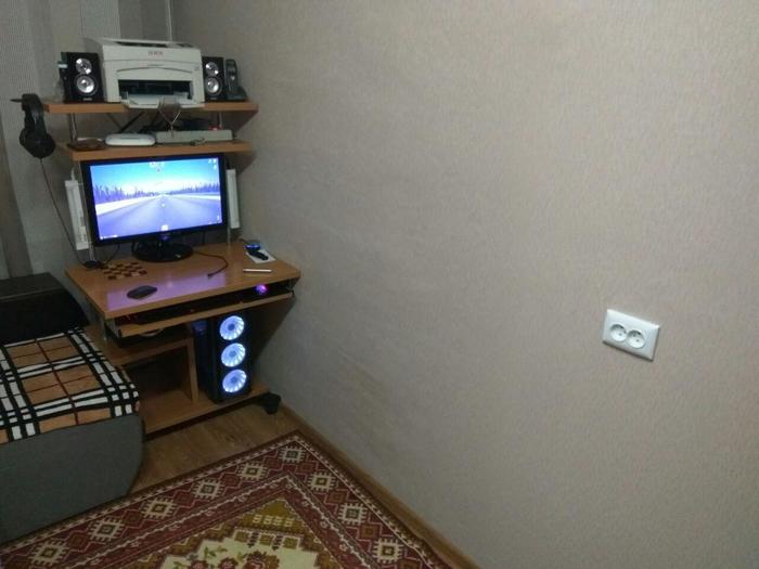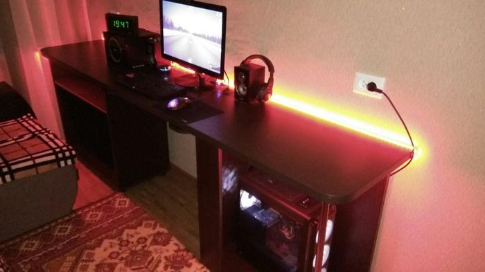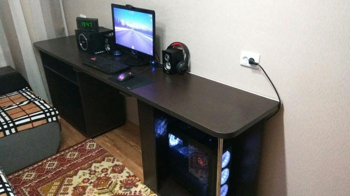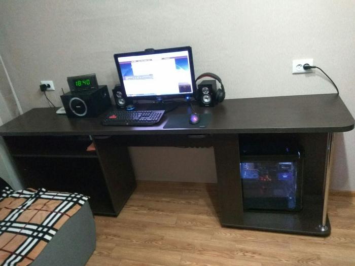 Достаточно давно захотел я себе новый компьютерный стол, но в силу того, что у меня длинная и узкая комната (4,5м*2,3м) - очень долго не мог придумать как новый стол должен выглядеть. И вот не так давно увидев какой-то видосик с самодельным столом - пришел к выводу, что системный блок можно ставить не как общепринято, а боком (так он и места меньше будет занимать и боковое стекло у корпуса будет не просто так). Готовые варианты столов мне не подходили из-за большой глубины столешницы.