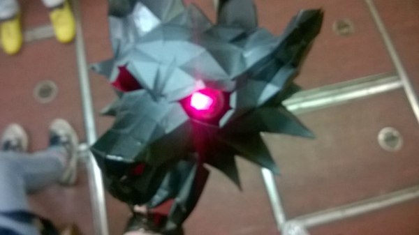 Так выглядела моя штучка до вставления в неё диодиков и покраски. Отсутствует кусок пасти снизу, чтобы потом через это свободное место и прикрепить диоды внутрь, тк я не стала так заморачиваться, как автор первоначального поста, отрезая часть сзади и цепляя на фанеру. Во-первых, фанеры у меня нема, во-вторых, делалось всё (ну, как всё - распечатка-вырезка-наклейка-доведение до ума имеющихся в наличии диодов) за одну бессонную ночь.