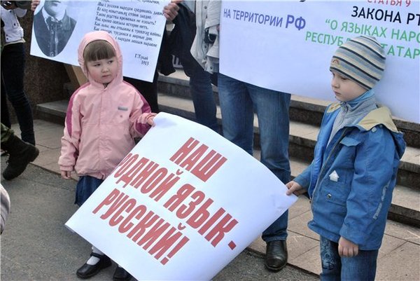 Сейчас этнократическое правление Республики Татарстан, по сути превратившее регион в этнический анклав, всеми силами стремится воздействовать на Государственную думу России чтобы не допустить для рксского языка статуса «родной язык», и это – для страны, где русских 80% и почти 90 % граждан фактически называют русский своим родным языком!