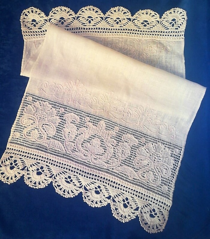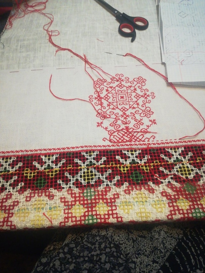 Быстро летит время. Вроде только что встретили 23 год, а на носу уже 24. Именно в январе 23 года я и задумала вышить северный свадебный венец и стала искать материалы для него. На конкретный венец я заглядывалась уже давно и подтолкнула меня начать его моя ученица-начав вышивать кокошник для своей племянницы. Да в конце концов, моя ученица вышивает, а я, учитель, все не могу решиться? Вышивка должна была быть в технике "Сажение по бели"( жемчужное шитьё) и дополнено "золотным шитьём.