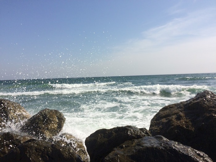 Море. Был только один день без ветра, видимость шикарная. В остальные дни много водорослей, но их постоянно убирают.