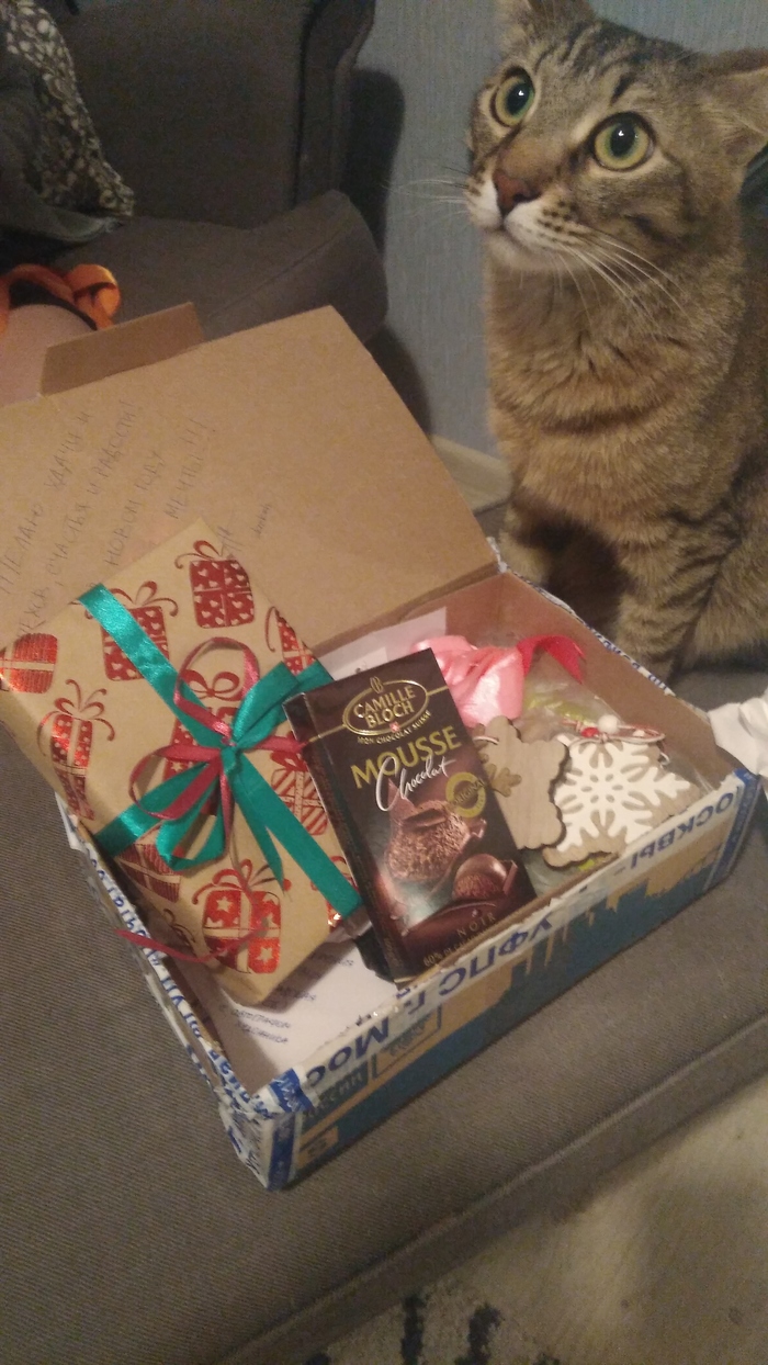 @darkzh спасибо Вам больше от меня, от моих девчонок. Ваш подарок замечательный и очень душевный. Открытки просто чудесные. И отдельно спасибо от Каляма за клёвую вкусную коробку которую он уже утащил и за обилие таких прикольных ленточек! )))