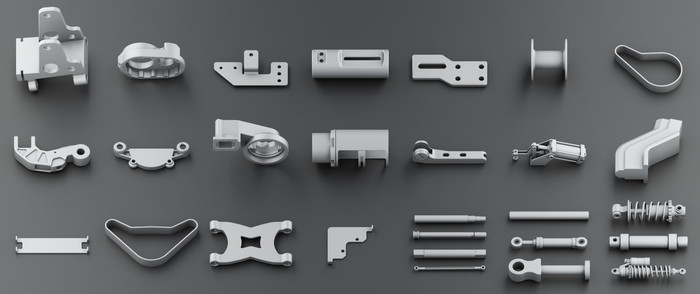 Всем привет, эту небольшую библиотеку моделей, я сделал в программе Fusion 360, дорабатывал и собирал комбинации уже в 3D max. На всех моделях есть UV. На мой взгляд модели прекрасно подходят любителям создавать быстрые 3Д концепты различной техники в фантастическом и современном стилях. Так же собрал из этих моделей пример "Робота-байкера", только покрышки и одежду в этом проекте делал отдельно. Вы можете его использовать для любых коммерческих и персональных проектов.