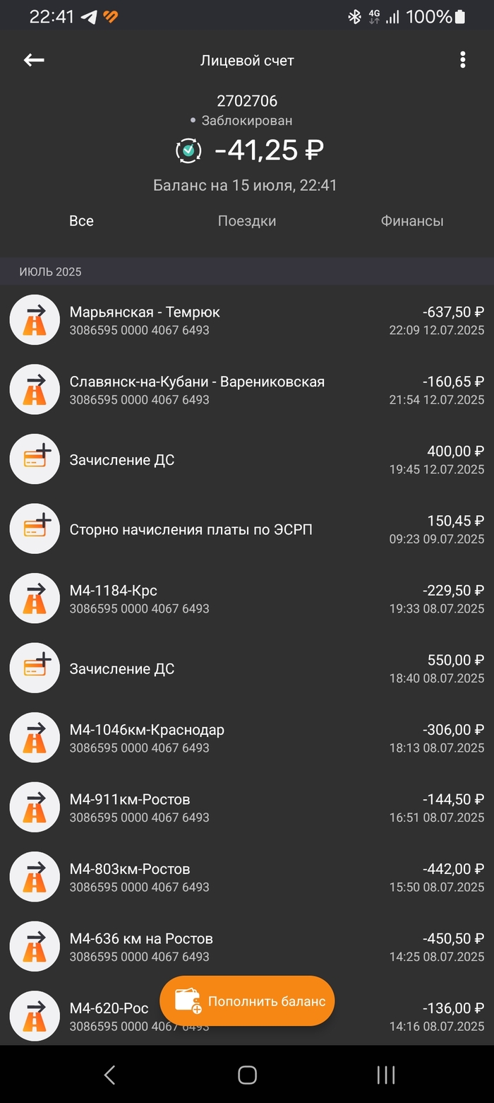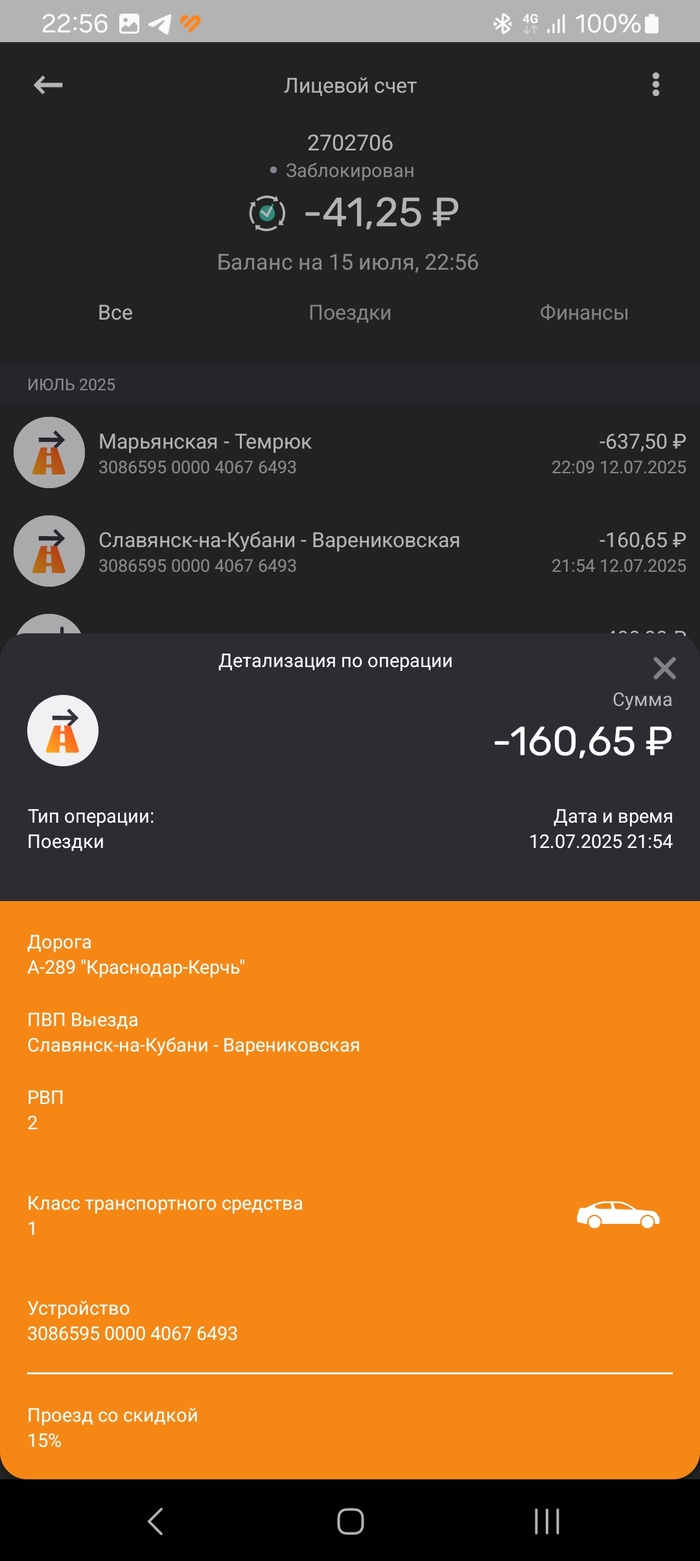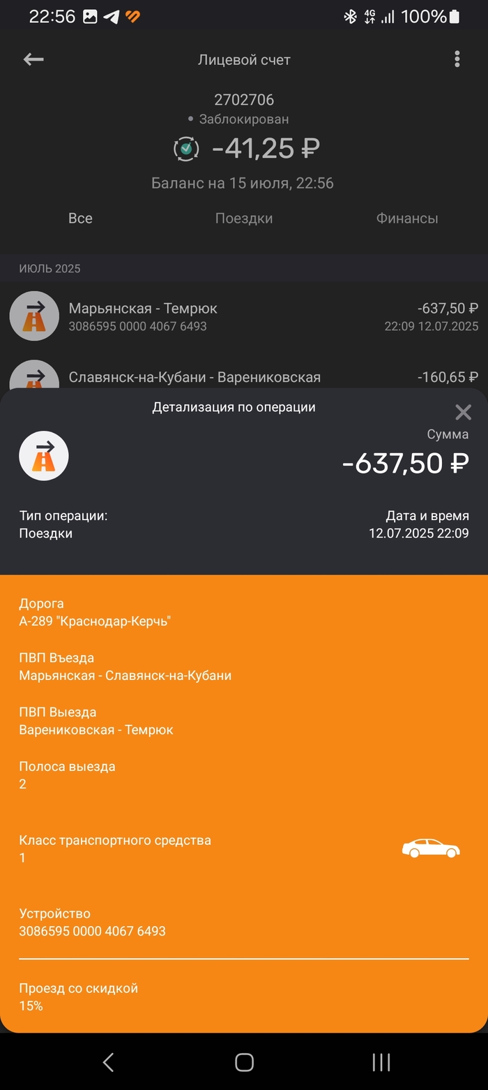 Ехал я тут как-то вечерком в крым из краснодара.... На транспондере лежало 750₽ чего хватало на проезд по участку: краснодар керчь.