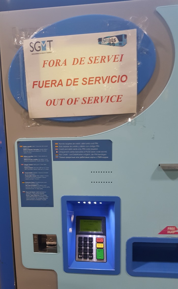 Из аэропорта можно было легко и быстро добраться на аэробусе, который стоял у выхода, он проезжал как раз через площадь Испании, куда мне, собственно, и надо было. Один аппарат по продаже билетов не работал, у другого выстроилась огромная очередь. И тут как раз подъехал автобус до 1го терминала аэропорта. Начитавшись до этого в интернете о самом дешёвом способе - поезде, который ходит из 1го терминала, я ни минуты не раздумывая уезжаю на этом автобусе. Кто бы мне сказал, что ехать до него (терминала 1) минут 15 и еще ковылять по нему минут 20, тогда я ни за что не стала бы так поступать, пытаясь зачем-то сэкономить 4 €. До этого я еще убила кучу времени на поиск своего багажа, время уже приближалось к 12 ночи. Перспектива бродить ночью одной по городу была так себе. Пришлось опять галопом нестись по указателям через весь аэропорт. Поезд как раз стоял на месте - конечная станция. Но надо же было еще купить билет Т10 в терминале (билет на 10 поездок, по которому стоимость проезда дешевле в 2 раза разовой поездки), благо, какой-то мужчина, видя мои мучения, просто выхватил у меня карту из рук и проделал все махинации за меня. При этом что-то бубня по-испански, думаю смысл был: "Ну ты что совсем тупая".))) И, кстати, я зря переживала, что буду бродить ночью одна по городу. Барселона жила активной ночной жизнью, под окнами меня встретил самый настоящий концерт, была установлена сцена, колонки, вокруг толпа молодёжи, распивающая пиво. Такие концерты под окнами для Барселоны оказались не редкостью.