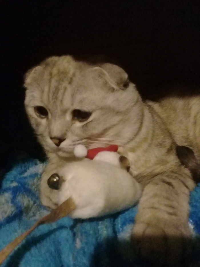 "Рапунцель " счастлива , а котофей охраняет свои игрушки .