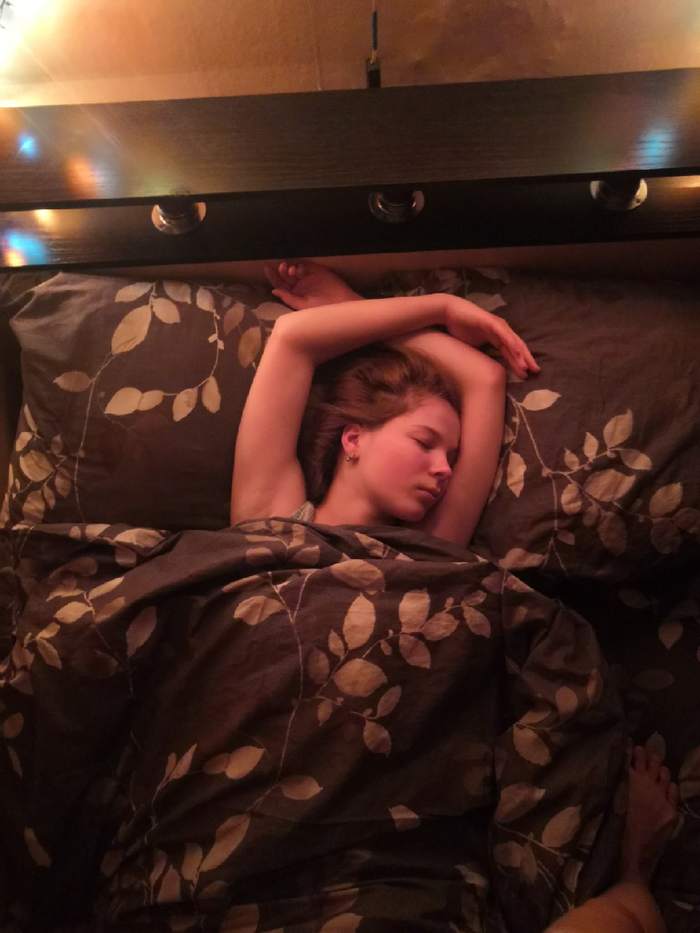 Едем к центру, там её заберёт и отвезёт обратно Лена после работы. Порывается выйти на улицу и стоять под снегом, пока Лена заканчивает. Приходится заблокировать двери.