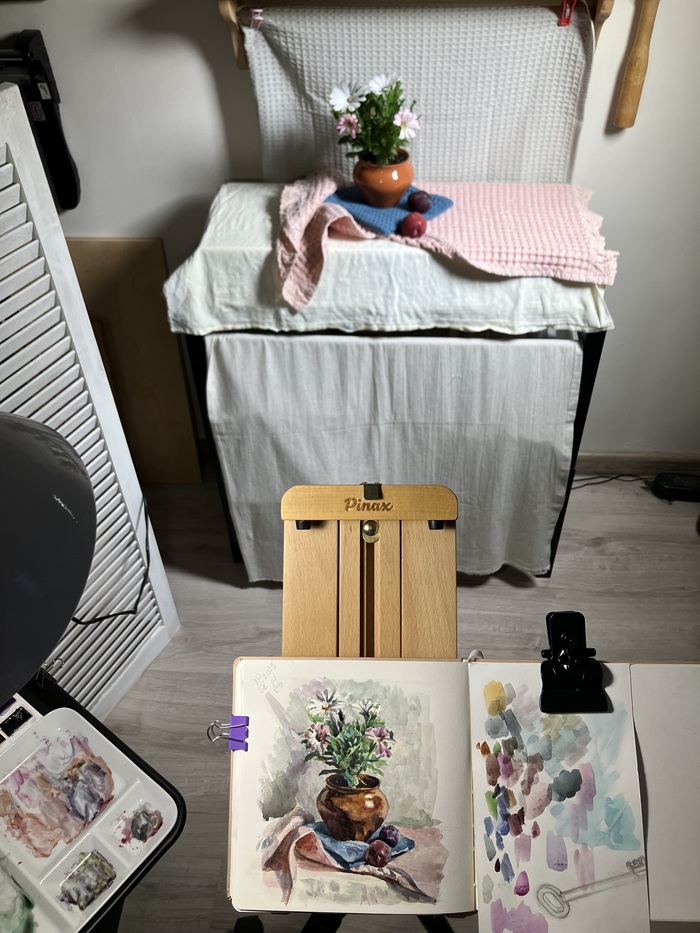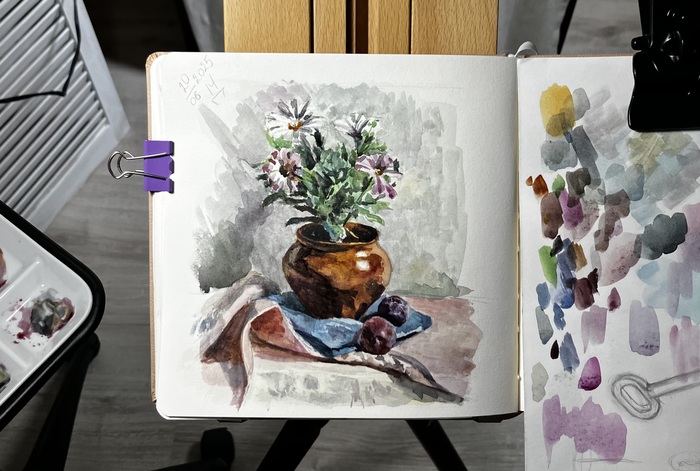 Я только учусь, можно сказать, начала с сентября этого года учиться акварельной живописи, до этого блуждала в поискх учителя, что-то калякала.
