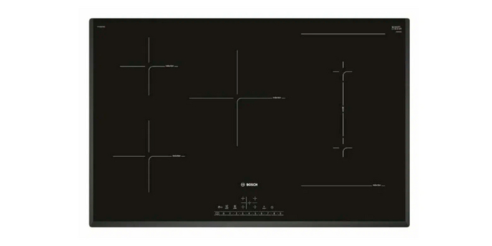 Следующая в моем топе премиальная индукционная панель из Serie 8 с шириной 81.6 см, отличающаяся высоким качеством и функциональностью, предлагающая привлекательную цену по сравнению с другими немецкими брендами. Черная стеклокерамика с скошенными краями и боковыми металлическими профилями придаёт панели элегантный и современный вид, устойчивый к повреждениям и простой в уходе.