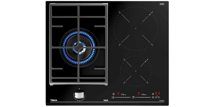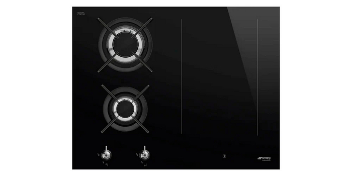 Правая часть панели оснащена двумя индукционными конфорками по 2.1 кВт, с сенсорным слайдером Touch Control, режимом Boost (до 3 кВт) и функцией Multizone для объединения конфорок. Функция поддержания тепла, «Пауза», двойной таймер, индикация остаточного тепла, защитное отключение и блокировка от детей. Жиклеры для перенастройки на сжиженный газ в комплекте.