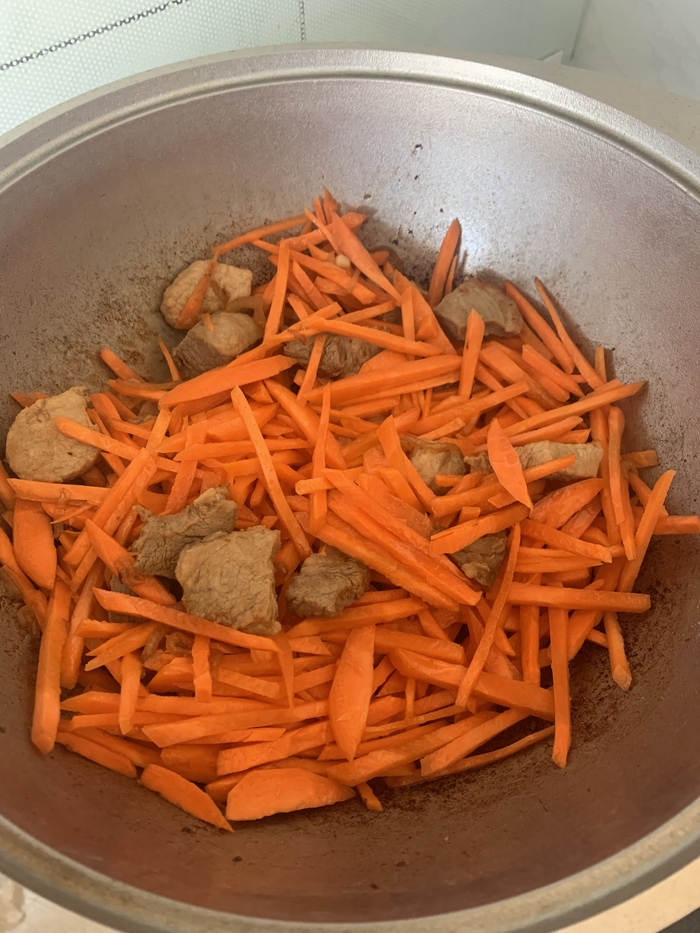 Потом , как лук обжарил то закинул мясо . Ну и морковью все это дело. А то какой же плов ( по мордовски) без моркови?