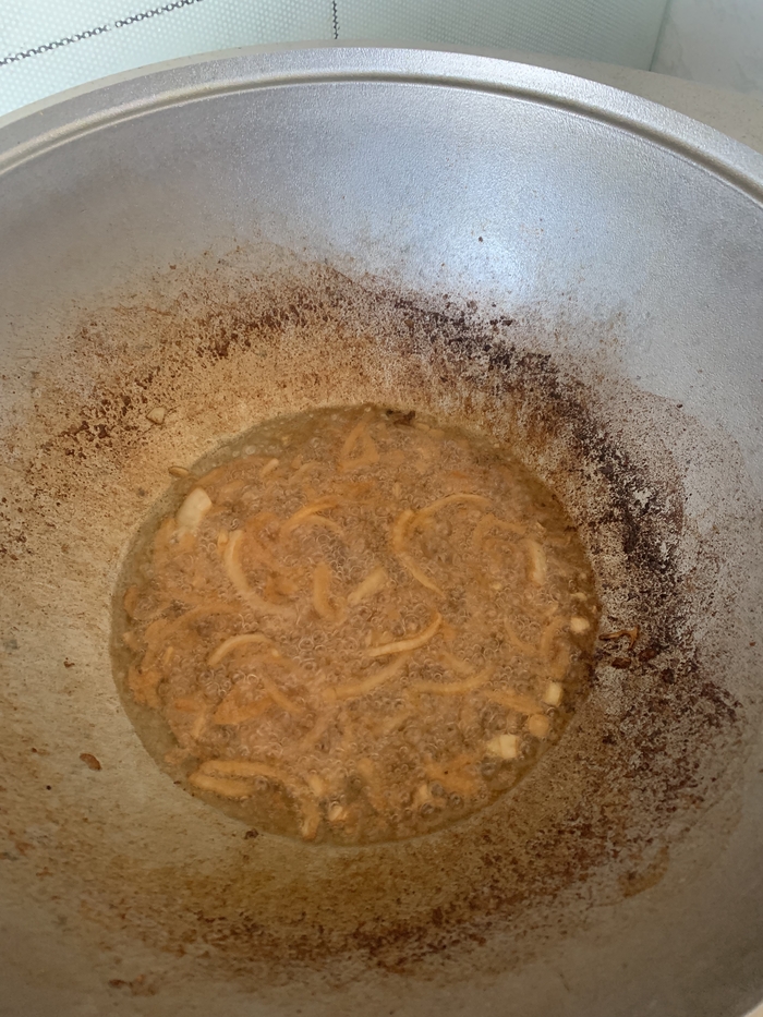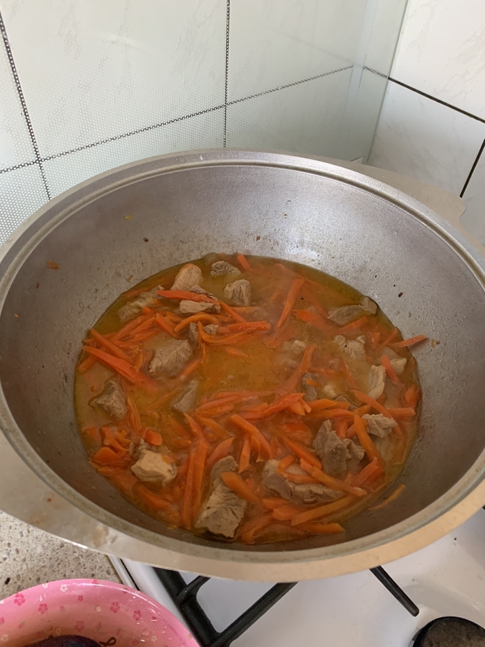 Потом втудой закинул свинины. Как все обжарилось то мясо достал и закинул лук