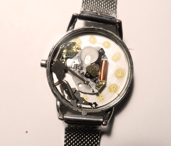 Не скажу, что я какой-то гуру в ремонте и реставрации часов, но мне кажется, что с убийством циферблата вы немного поспешили.