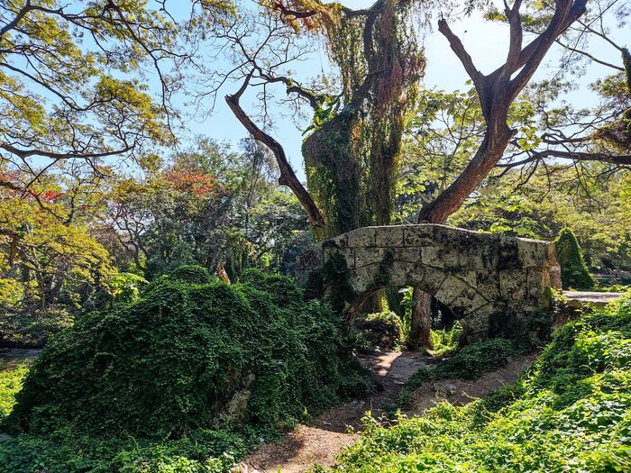 Вдалеке был виден железнодорожный мост. К сожалению, в 2025 проехать здесь было уже невозможно, а раньше маленький поезд (когда-то даже на паровой тяге) возил туристов в Долину сахарных заводов.