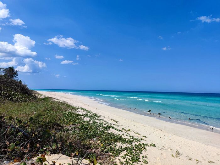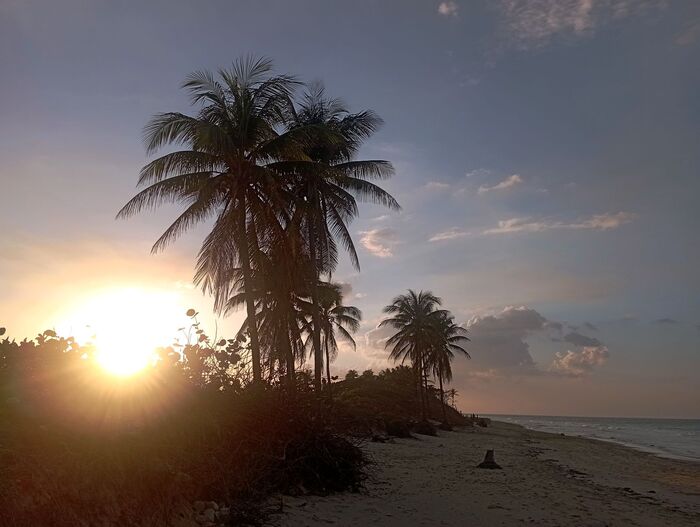 Отель был побитый жизнью, обшарпанный, но нам-то нужен был пляж и стол. Так что мы купили билеты дневного посещения, отпустили водителя и отправились загорать и купаться. После безлюдных пляжей отдыхать там было непривычно. Песок и море - шикарные, еда - сносная, напитки - плохо. Коктейли были достаточно химозные, компоненты заканчивались. Самое обидное, такое бывает не только в дешёвых отелях, в пятизвёздочных тоже случается. Увы, после ковидных бедствий туриндустрия Кубы так и не вернулась в норму. (Но это индустрия. Если отдыхать самостоятельно - всё есть).