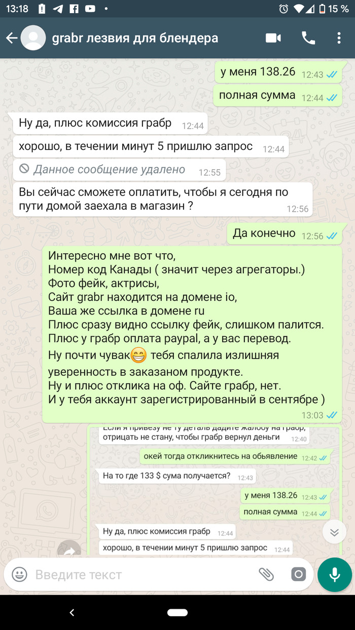 оставил заявку, всё описал, приложил фото товара и тут мне стучатся в почту с предложением все обсудить в воцапе.