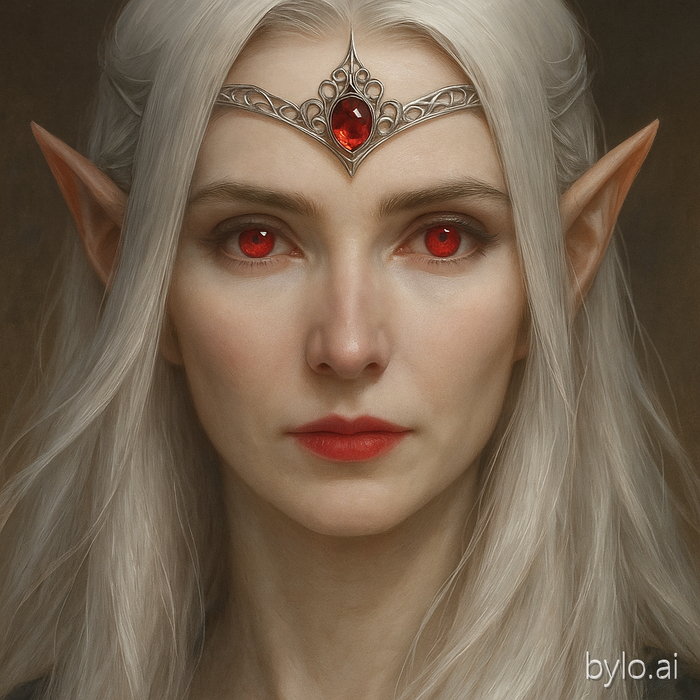 или: Нарисуй арт в стиле картины Леонардо да Винчи Дама с Горностаем но у дамы пусть волосы будут платиновые а глаза красные а вместо горностая пусть будет цифровой кот