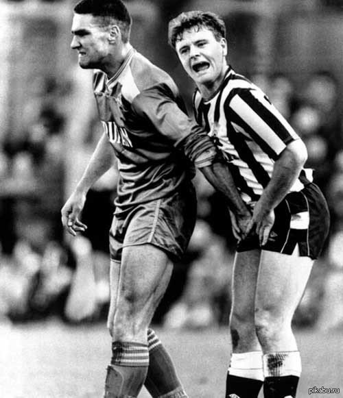 TenZen Винни Джонс на поле 10 лет назад Бывший футболист, а ныне звезда фильмов "Большой куш" и "Карты, деньги, два ствола" - Винни Джонс. Справа Пол Гаскойн Винни Джонс Футбол Старое фото Неспортивное поведение