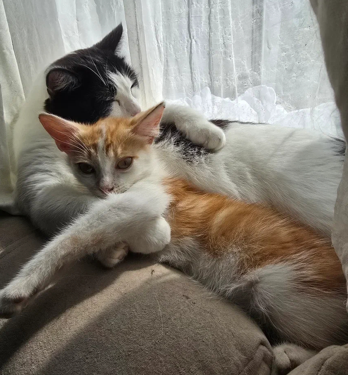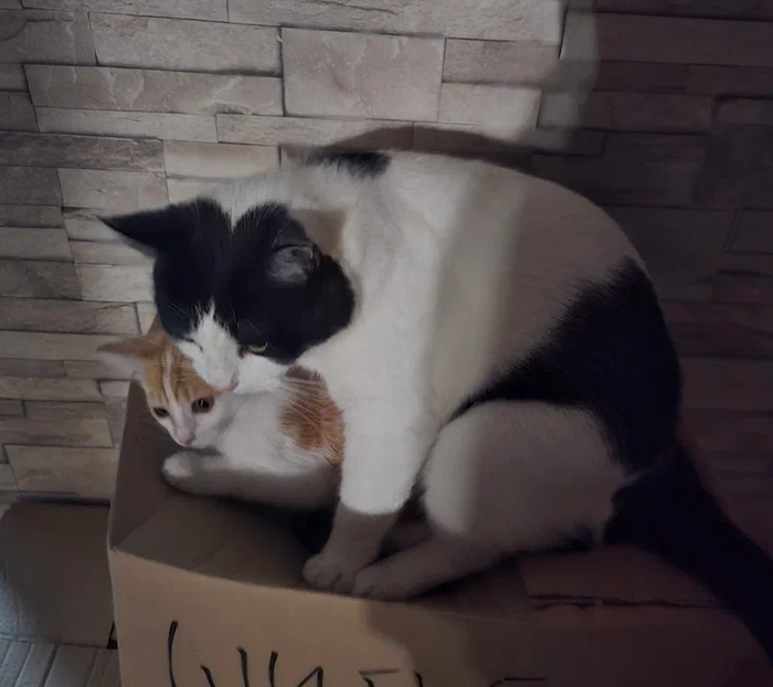 Такс. Сразу позитивчика давайте нагоню, потому что придется рассказать о самой грусти, которая со мной случилась за всю мою жизнь (и там дальше будет очень длиннопост с много печального). Вот така любовная любовь с Люсей и рыжой котёнкой у меня щас творится. Люся снова включил мамку-наседку.