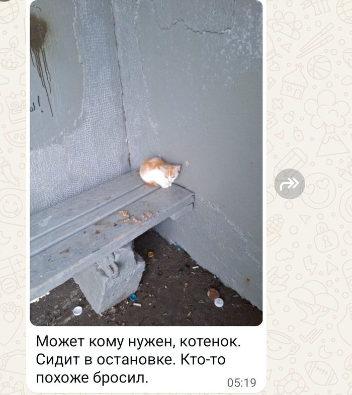 Я увидела это сообщение в 7 утра, через два часа после публикации. Молча принесла телефон мужу. Он хмыкнул, так же молча взял кофту и мы пошли. И да, два часа спустя котенок был там же. Видимо, его действительно выбросили, бедолага от испуга никуда даже не убежал за это время. Хотя пытался убежать уже от нас, когда ловили. Но безуспешно, был захвачен, укутан в теплую кофту, принесен в теплый дом, откормлен, отогрет и обласкан.