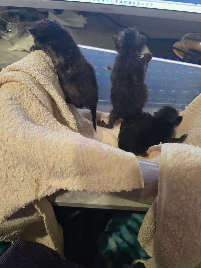 4. Притащила новорожденных выброшенных котят после прогулки с собакой - нашла пакет с "мусором", трое были ещё живы, замотаны в мою толстовку и утащены домой на отогрев. К сожалению, они все погибли в течение пары недель - видимо, сильно переохладились, да и без мамы-кошки вытащить мальков очень сложно. Но всё это время мы вместе их выкармливали, грели, массировали.