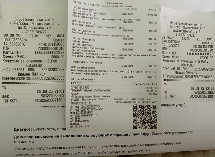 Чеки за лечение Сильвы, также подробные отчеты есть в недавних постах @IrinaKosh