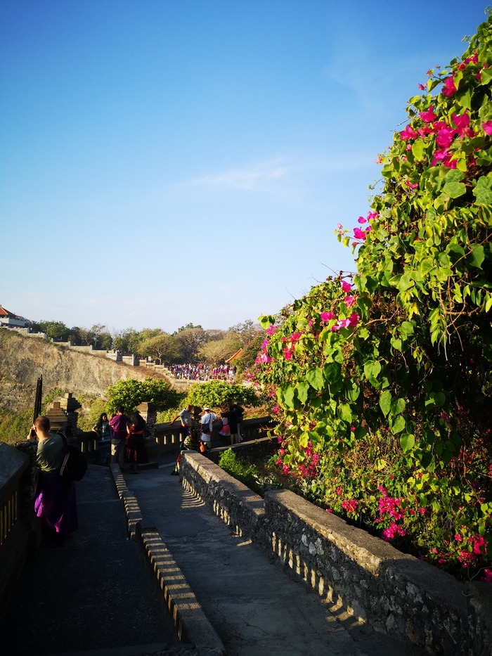 Если смотреть на храм на воде, то дорожка слева и наверх, мимо лавочек сувениров, ведет к многочисленным кафешкам на обрыве. Можно поужинать, и встретить закат. По пути к кафешкам будет та самая небольшая кофейня с люваками и лисицами. при мне лисицы подрались