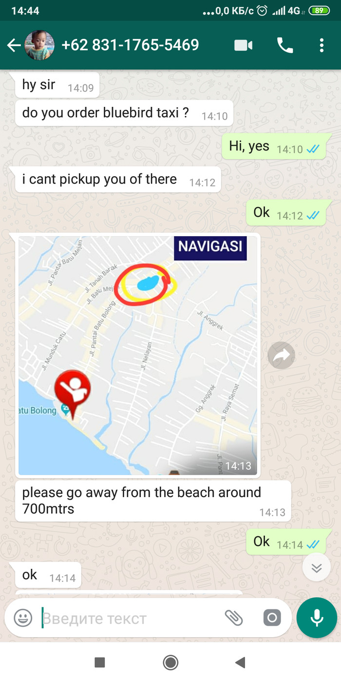 До куты доехать 300 000 по их стандартным расценкам - тычут в нос засаленной бумажкой, и говорят что это официальные цены. По грабу это 160 000. Начали торговаться, и таксист даже уступил до 270 000. Но у нас была уже какая-то внутренняя злость на этих чурок, и твердое намерение назло дотопать до трассы. Поэтому я сказал что 200 последняя цена и ниипёт. если хочет, пусть дальше сидит ждёт. Бомбила понял по нашим лицам, что мы точно дойдем, и согласился за 200. По факту я его даже чуть-чуть нагрел на стоимости поездки т.к. он по пробкам ехал 2 часа. Реально долго получилось, несмотря на близость Куты по карте. Блю берд такси с их счетчиками вышло бы дороже.
