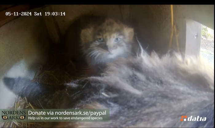 В конце концов, выявился самый смелый и отчаянный мануленок. И происходило так: отважный манул медленно продвигается к свету, остальные за ним следят. Котенок практически выходит к маманулу, но в последний момент пугается и быстро отползает к остальным. И затем всё повторяется))