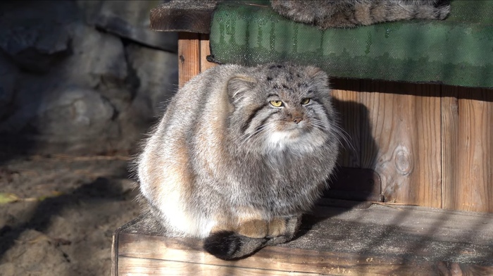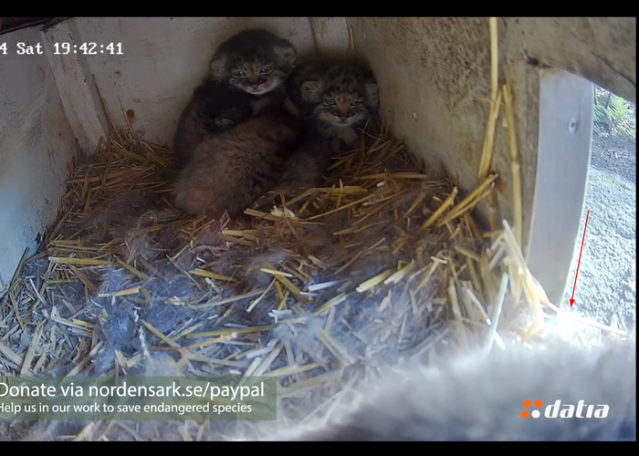 Сегодня манульчики были очень активны и даже периодически высовывались из домика)) И хоть им было очень интересно, но страх пока перевешивал. Это не домашние котята... А вот хвост маманула уже практически повержен!