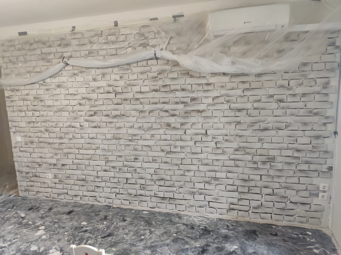 Первые 2 фотки итог работ по укладке фартука из кирпича в уже готовом ремонте . Далее ниже сам процесс в фото и описание.