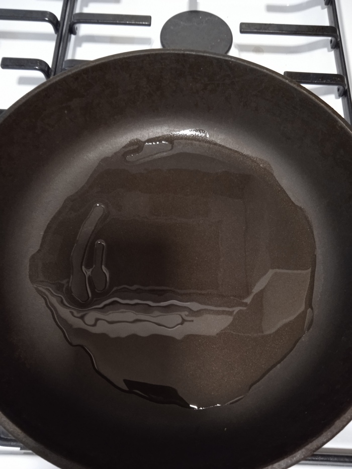 Сковороду (идеально - чугунную, а у меня такой большой нет, использую с тефлоновым покрытием, но толстую) ставим на огонь, наливаем щедрой рукой растительное масло, и, когда масло хорошо разогреется, выкладываем столовой ложкой картофельную массу в виде оладий.
