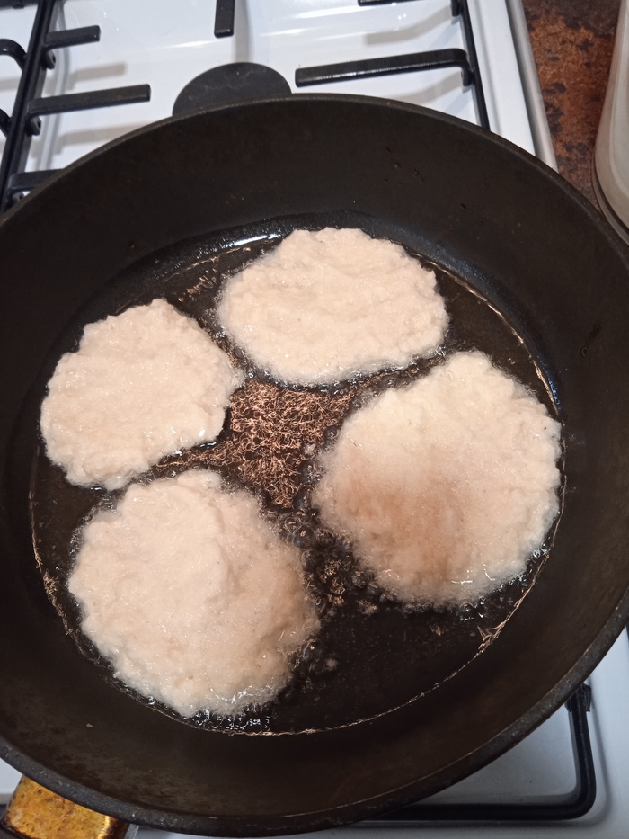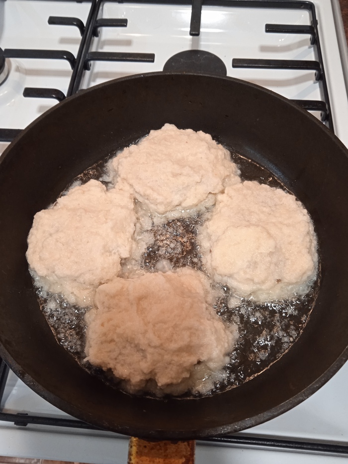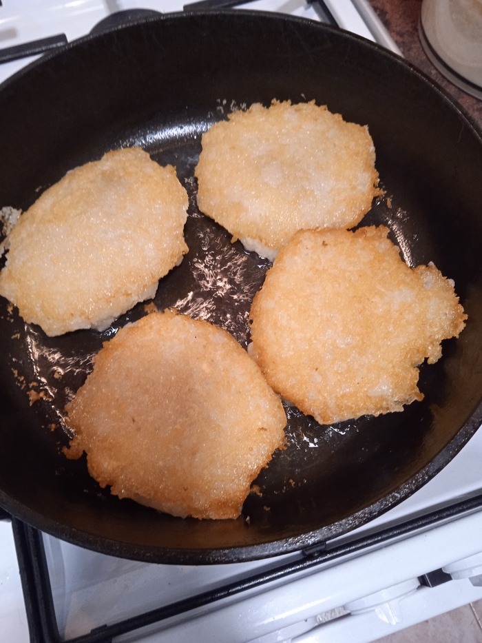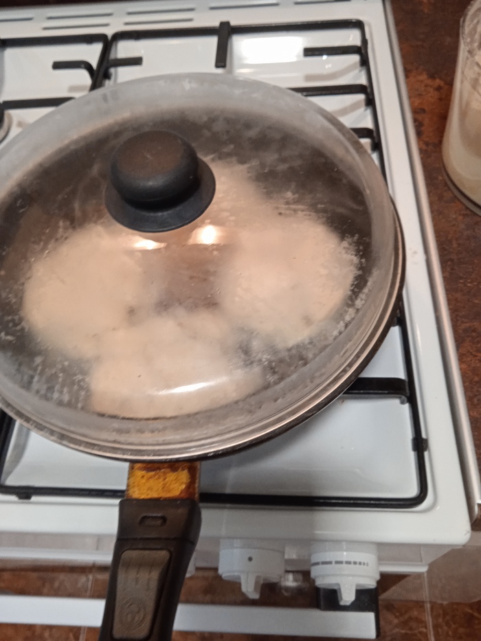 Жарю на не очень сильном огне примерно 7-10 минут с каждой стороны. Вначале можно закрыть крышкой, чтобы лучше пропёкся фарш