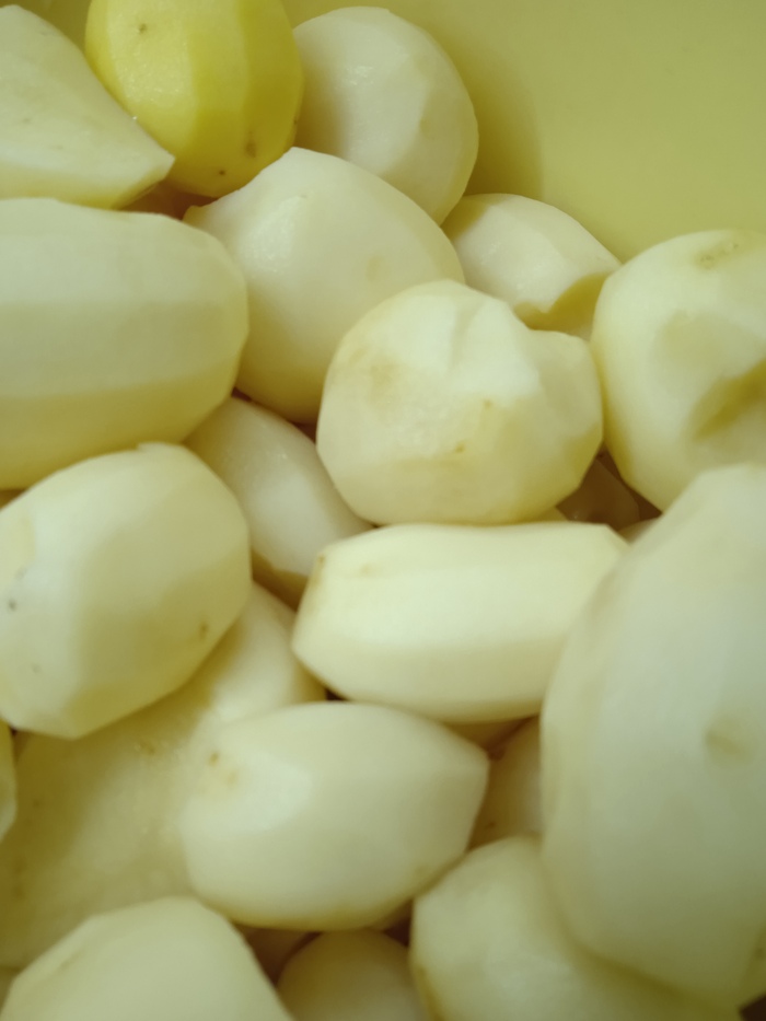 Яйцо, мука - можно добавить, но не сегодня. Это для картошки в феврале-марте нужно будет, а сейчас картофель свеженький, запечётся на "ура" без всяких добавок.
