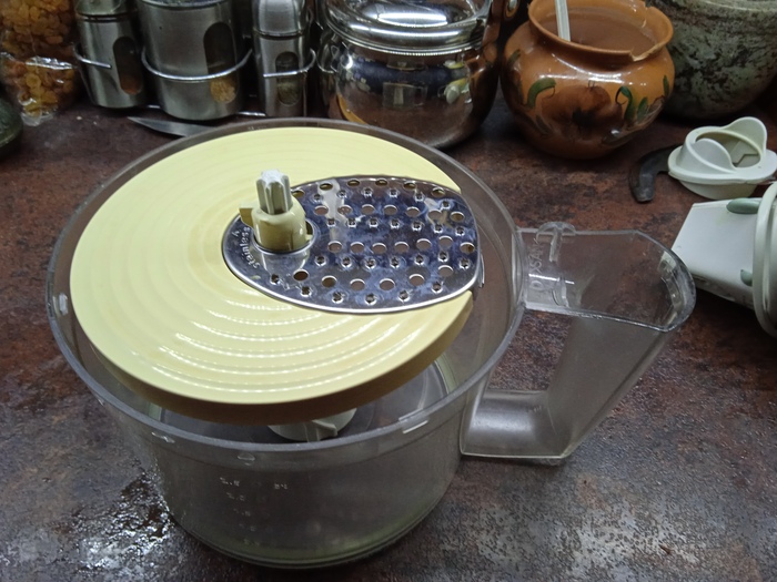 Картофель чистим, трём на мелкую тёрку. Я пользуюсь овощерезкой с ножом-тёркой.